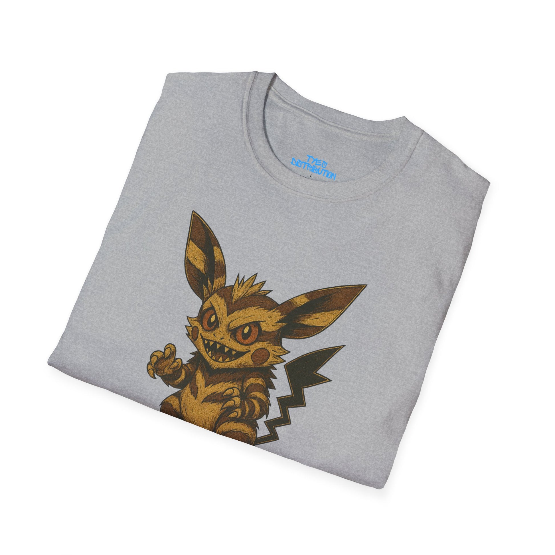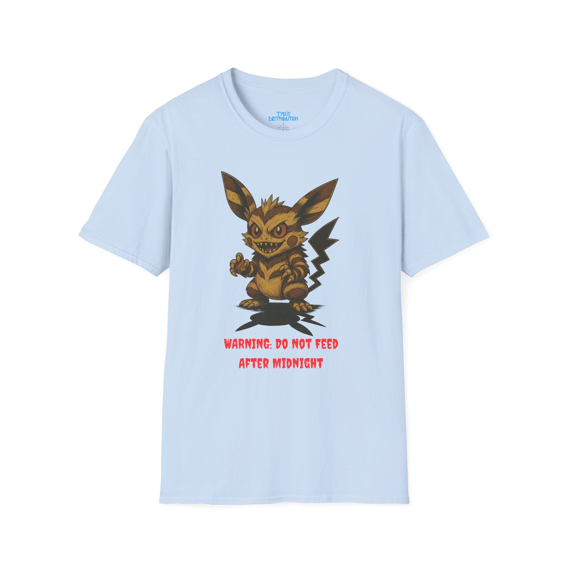 A hauntingly cute creature that’s both electrifying and dangerous. Rendered in a gritty vintage anime style, this twisted mash-up of pop-culture icons sits menacingly above the warning: “DO NOT FEED AFTER MIDNIGHT.”